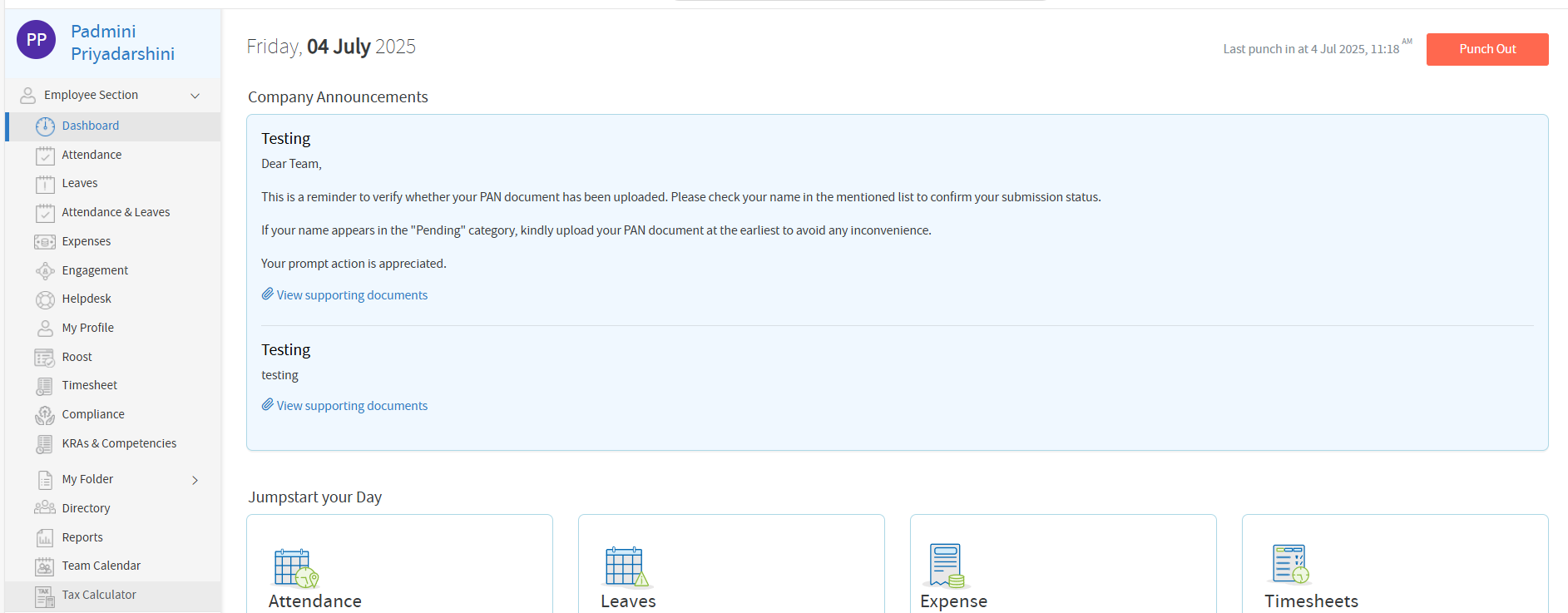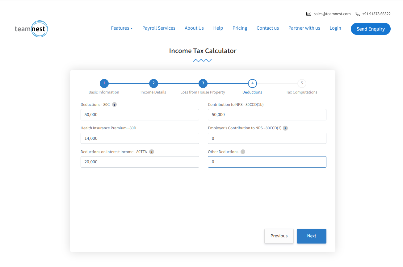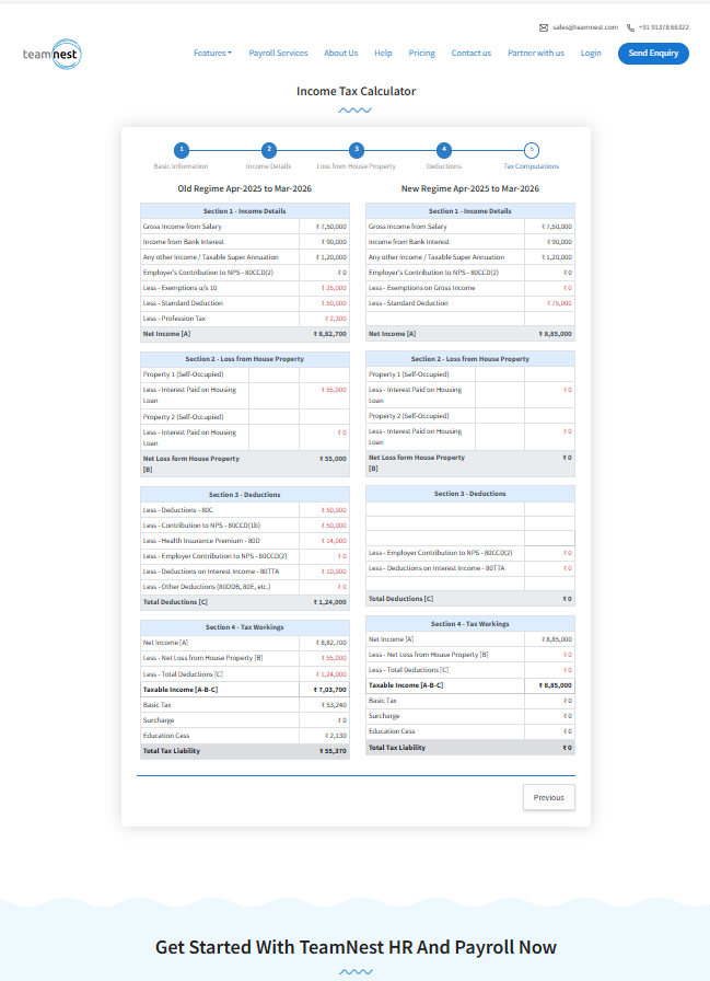 Clicking on this, the employee will be redirected to the Income Tax Calculator page.