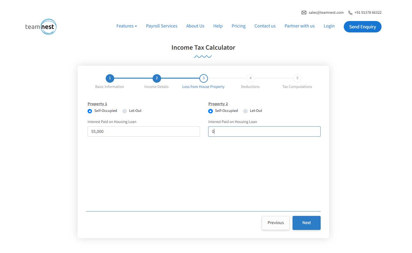 3. On the third step, details towards Housing Loan Interest and/or Loss from House Property can be added.