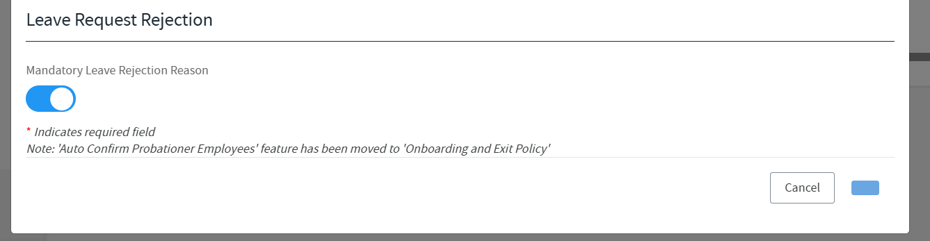 If you want the Reporting managers must mention the Leave Rejection reason, this can be enabled from the button as shown below.
