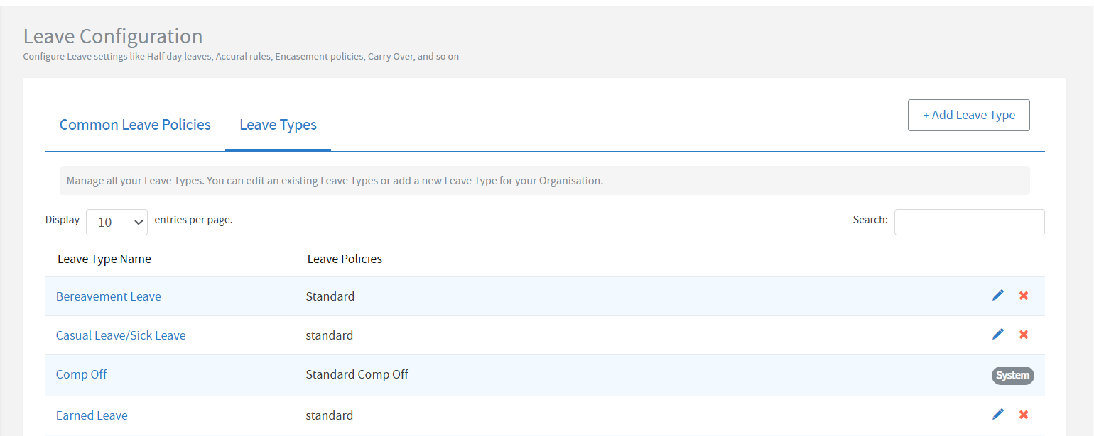 You can add your own Common Leave Policies for employees based on their specific designation or department. This can be added by clicking on the Add Common Leave Policy tab from the below path: