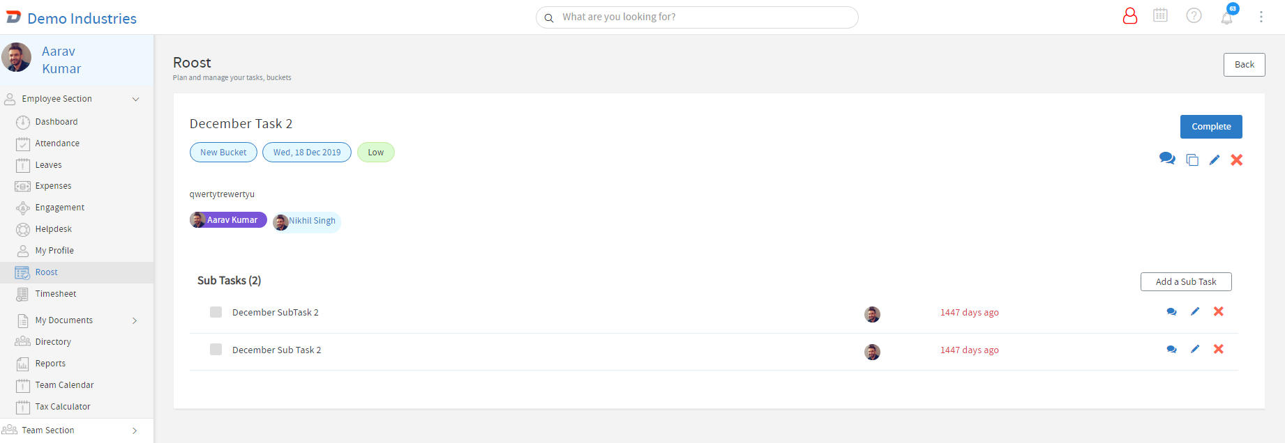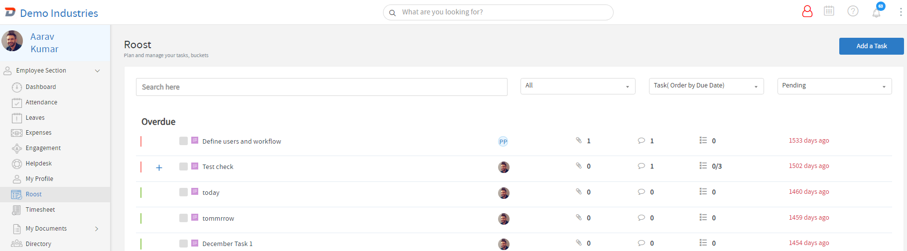 - Click on the ‘Add a Task’ option from the Employee Section > Roost.