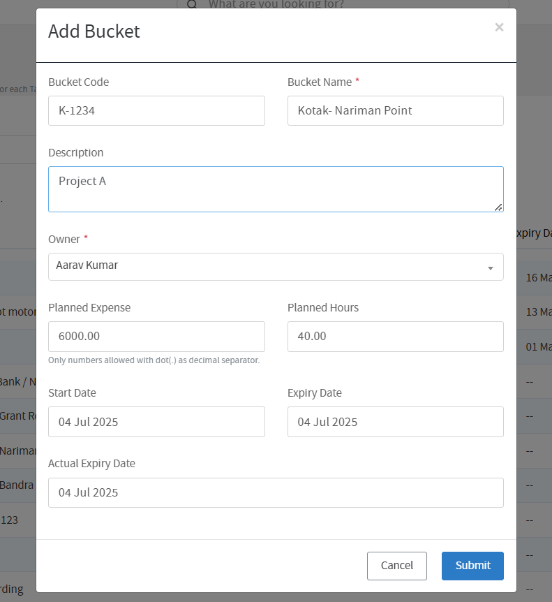 - Multiple Buckets can also be added in bulk using the Bulk Add option, with the help of the sample template provided.